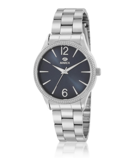 Reloj para hombre, analógico con caja de acero color azul y esfera multifunción color azul Correa de piel azul oscuro con cierre de hebilla...
