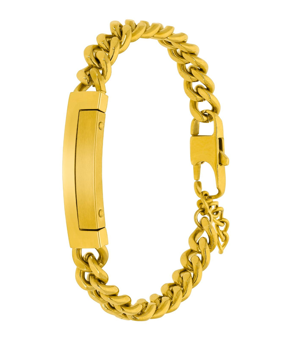 Pulsera para hombre, de eslabones en acero color dorado con placa grabable como motivo central