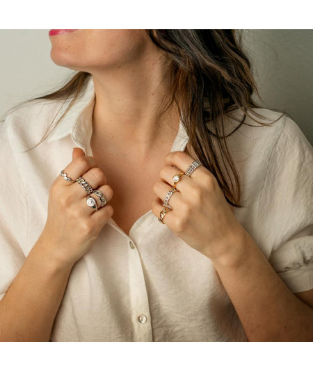 El anillo Frida Oro vestirá tus manos como ningún otro por su diseño fuerte y robusto, formado por dos brazos cuajados de bolitas y coronado por...