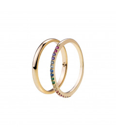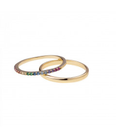 Luce estos bonitos anillos de plata de ley bañados en oro, uno liso y el otro con circonitas de colores con los que darás un toque original a tus looks