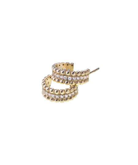 Pendientes de plata de primera ley con circonitas transparentes y dos filas de gallones bañados en oro ideales como complemento que te acompañará tanto de dia como de noche, tu eliges el look con el que los combinarás.