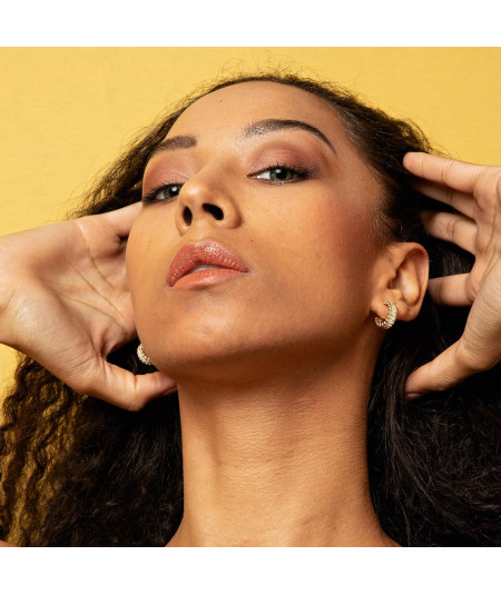 Pendientes de plata de primera ley con circonitas transparentes y dos filas de gallones bañados en oro ideales como complemento que te acompañará en esos momentos que te dedicas a ti misma, en tus salidas de dia o de noche, tú eliges cuándo y con qué combinarlos.