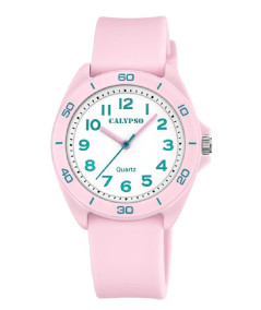 Reloj para mujer / cadete, analógico con caja de resina color rosa y esfera blanca con números en azul