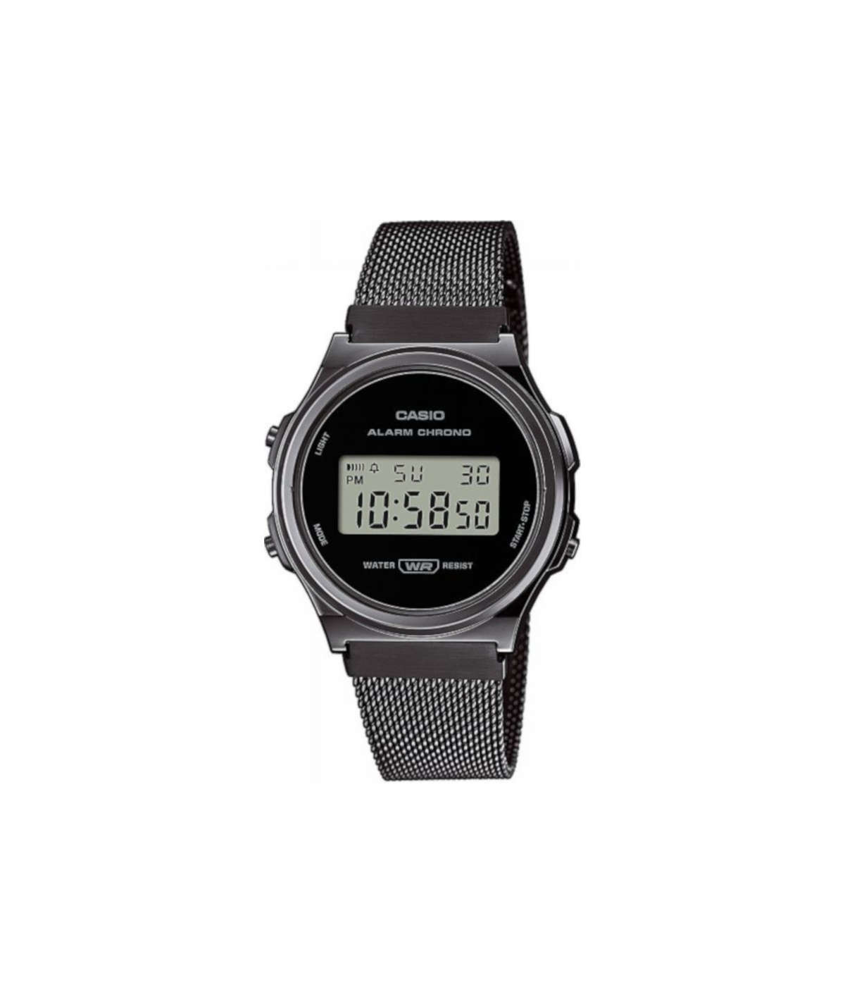 Reloj para mujer, digital con correa en acero tipo malla milanesa color negro