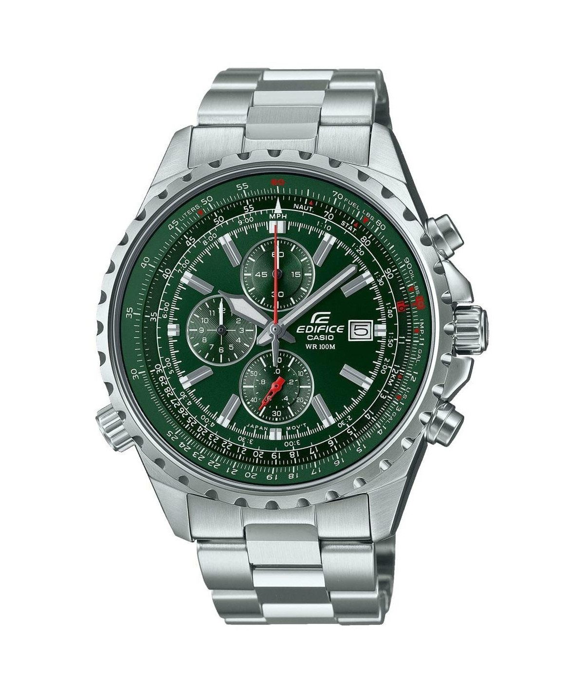 Reloj para hombre, analógico con caja de acero color plata y esfera verde, entre sus funciones destacan: