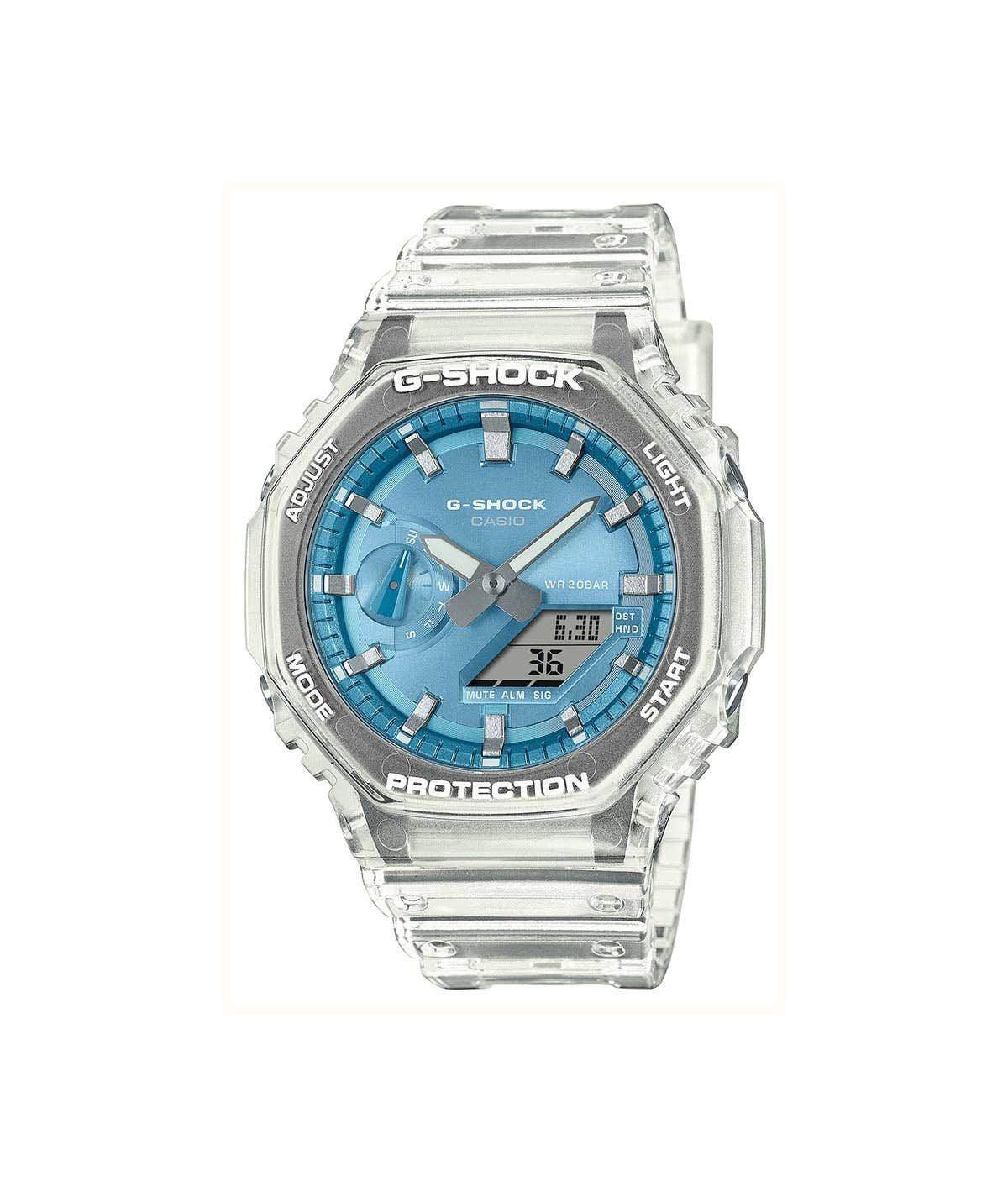 Reloj Casio para hombre, analógico / gigital con caja y correa transparente y esfera azul