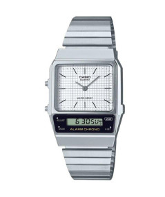 Reloj para hombre, Analógico / Digital con caja de resina color plata, esfera blanca con cuadritos en la parte analógica y negra en la digital.