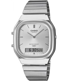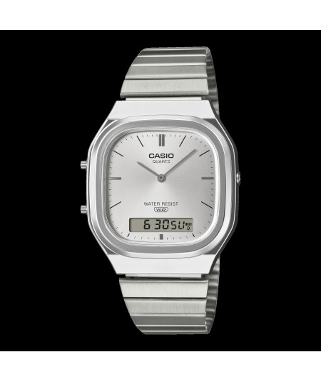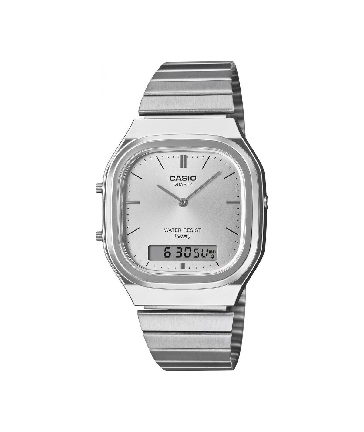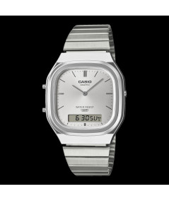 Reloj Casio Unisex, Dual Time, con esfera cuadrada y corrrea en acero