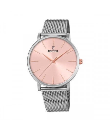 Reloj para mujer, analógico con caja y correa en acero chapado color rosé.