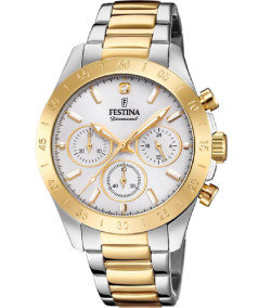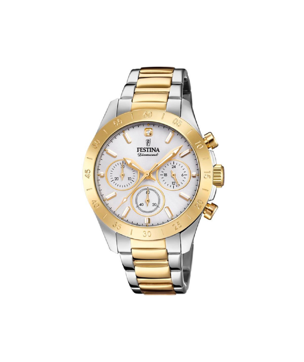 Reloj para mujer, analógico con caja y correa en acero bicolor dorado / plateado con cronógrafo