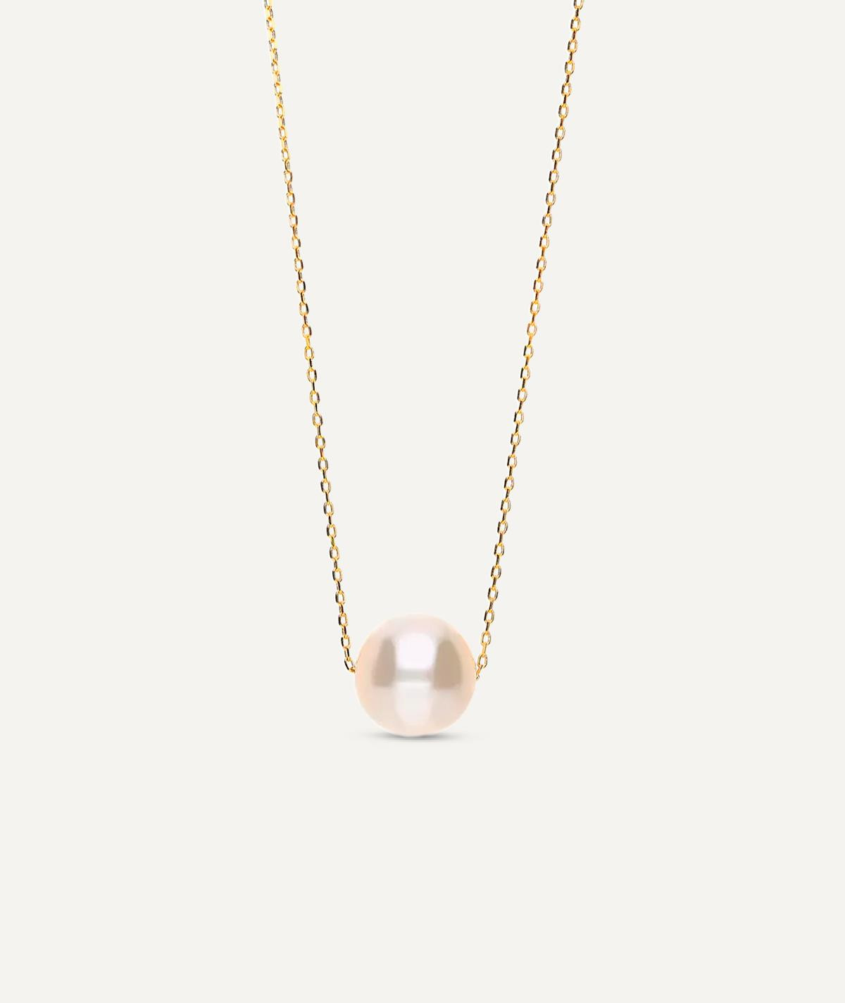 Una gargantilla de oro de 18 Kiltates de estilo minimalista con perla cultivada que le aporta un toque elegante, ideal para llevar tanto en ocasiones más especiales como en tu dia a dia