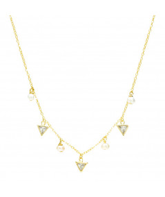 Gargantilla en plata chapada con triangulitos y pequeñas perlitas de diseño minimalista ideal para combinar con tu outfit favorito.