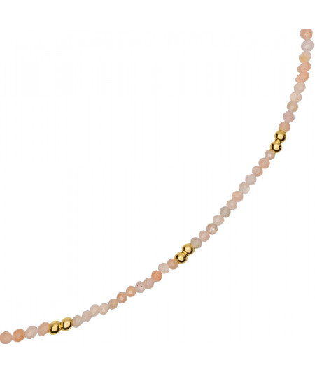 Las buenas vibras del mar convertidos en joya. Lúceas materializadas en pequeñas piedras naturales de ópalo rosa con cuentas de plata de ley bañadas en oro intercaladas. Una joya única, ya que no hay dos piedras naturales iguales.