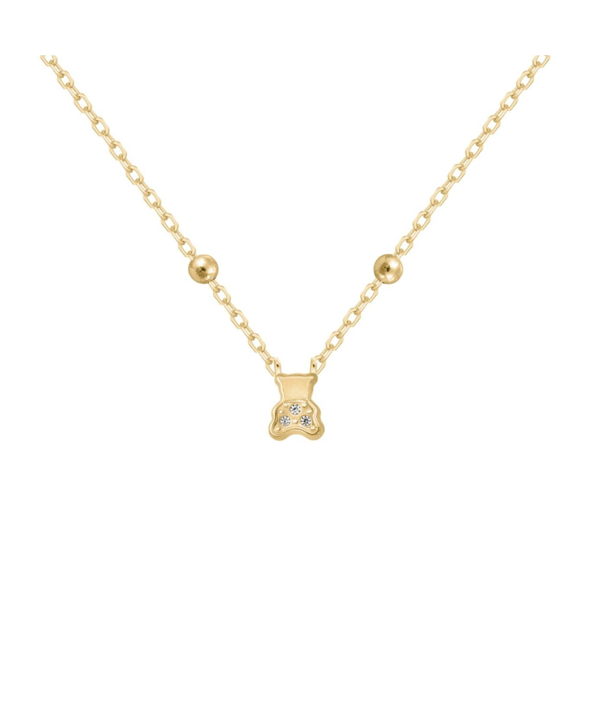 Gargantilla de Plata de Ley bañada en oro compuesta por cadena de bolitas y detalle central de osito con circonitas