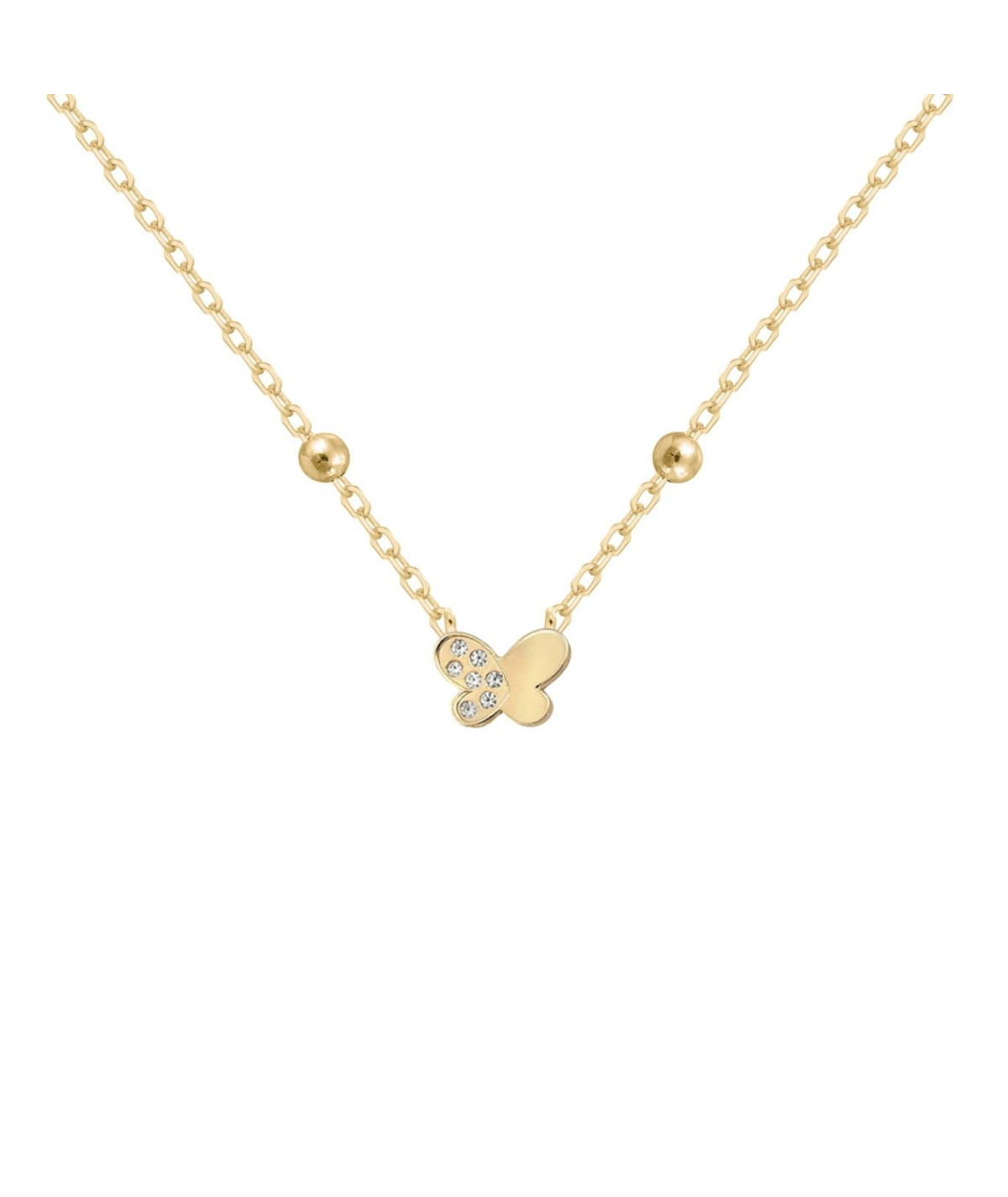 Gargantilla de Plata de Ley bañada en oro compuesta por cadena de bolitas y detalle central de mariposa con circonitas