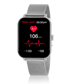 Smartwach Unisex con correa de acero tipo malla milanesa color plata