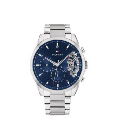 Reloj para hombre, analógico con caja de acero color plata y esfera azul multifunción