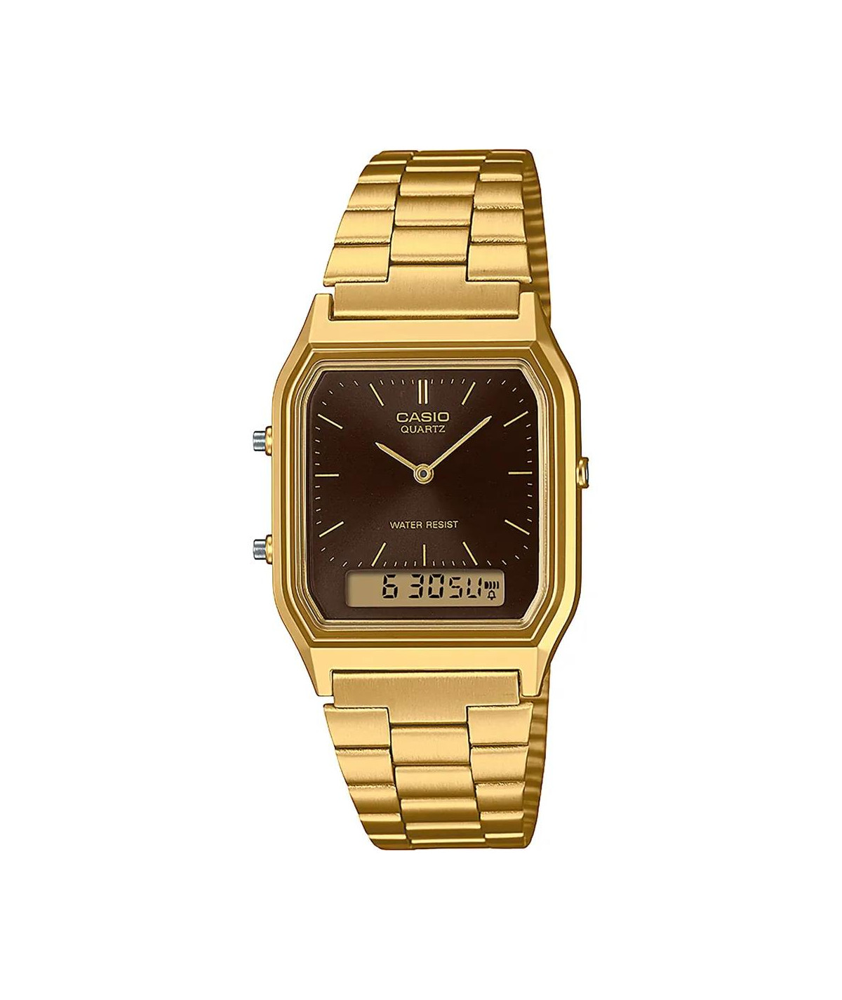 Reloj para hombre, analógico / digital con caja en resina color dorado y esfera marrón