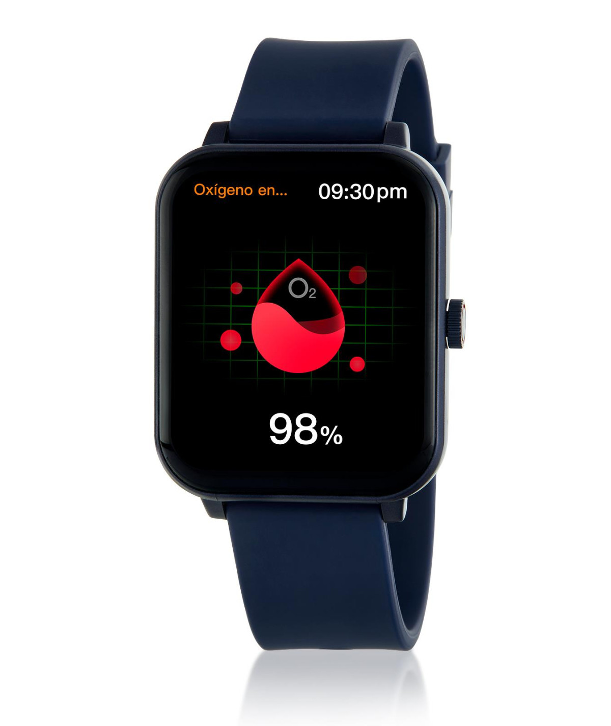 Smartwach para mujer con caja cuadrada color azul y correa de silicona color azul oscuro