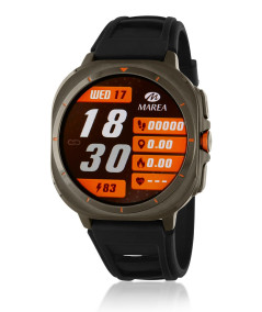 Smartwach para hombre, con caja de metal color gris y correa de silicona color negro