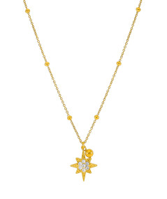 Collar para mujer de acero color dorado, compuesto por cadena y colgante de estrella polar con circoonitas blancas