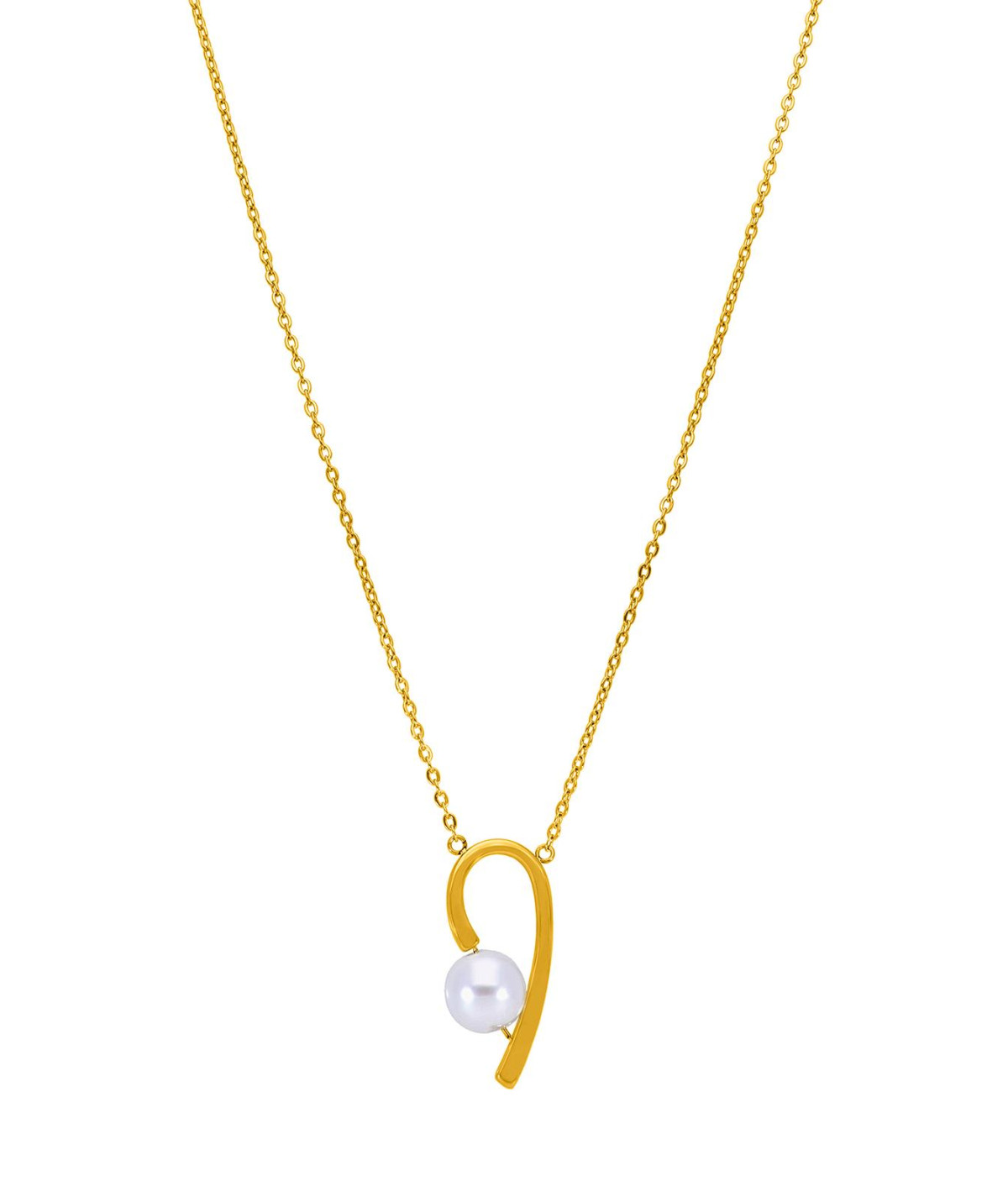 Collar para mujer, de acero color dorado formado por cadena y colgante con perla