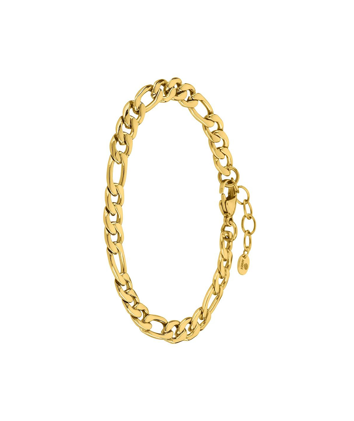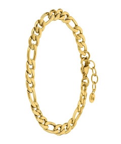 Pulsera para hombre, de acero color dorado formada por eslabones 3x1 y cierre de mosquetón ajustable a diversas medidas