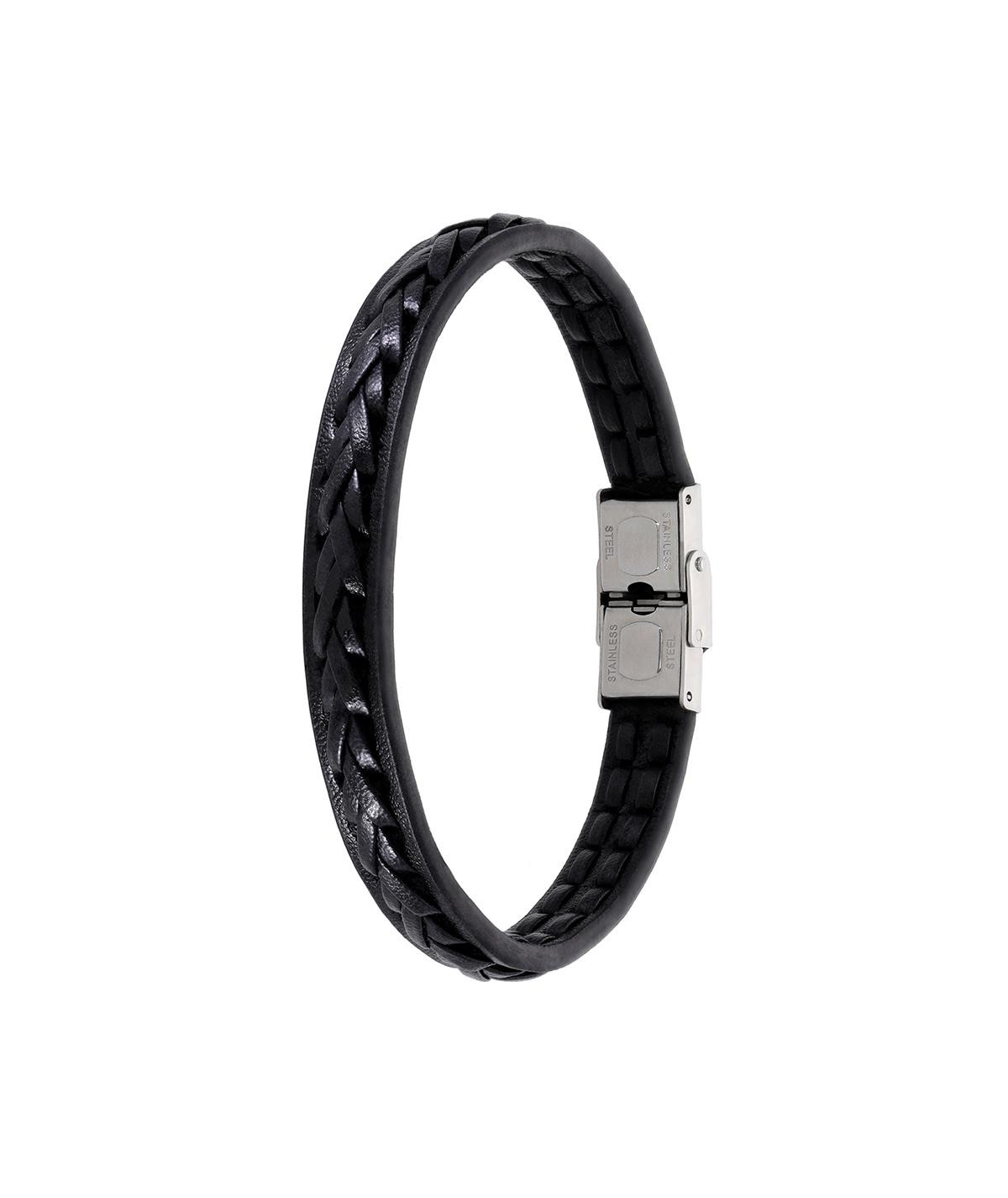 Pulsera para hombre, de piel trenzada color negro y cierre de acero