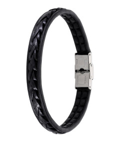 Una pulsera para hombre, de piel trenzada color negro con cierre de acero ajustable fácilmente a la medida deseada