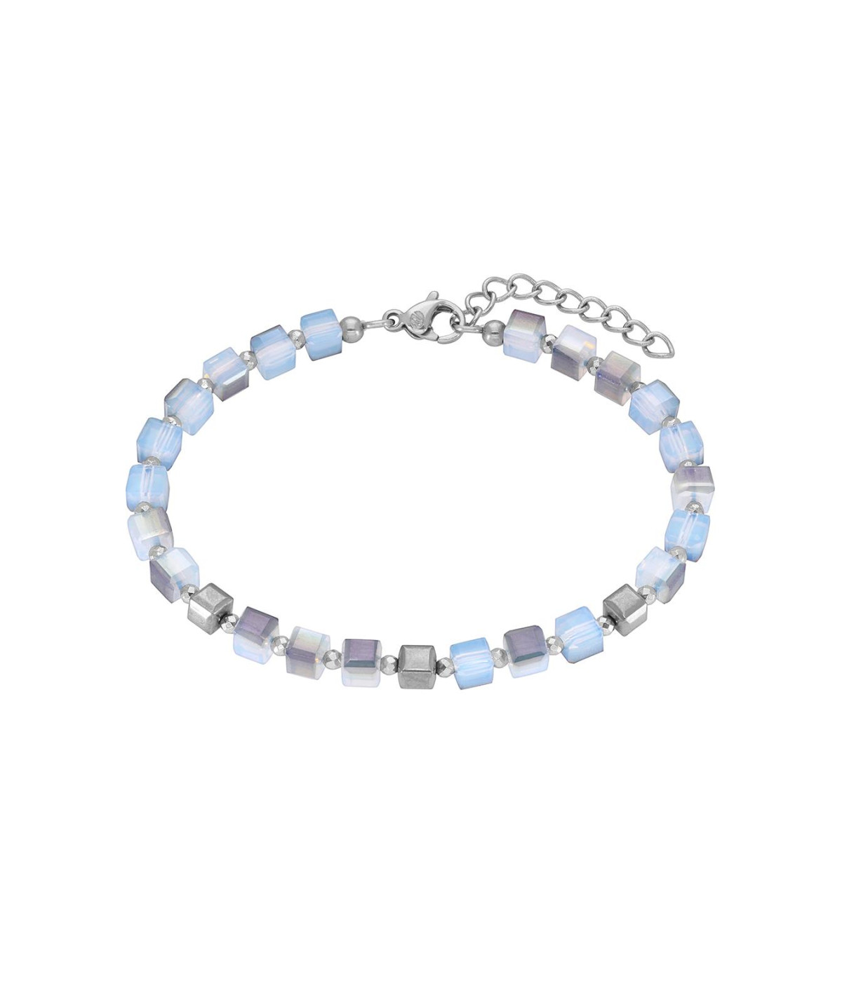 Pulsera para mujer, de acero color plata con piedras de cristal. Cristal en tonos azules y acero