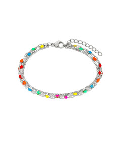 Pulsera para mujer de acero color plata con triple cadena esmaltada multicolor