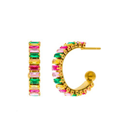 Pendientes de acero color dorado con circonitas baguet. Circonitas multicolor