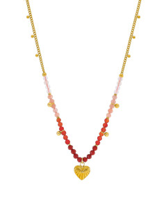 Collar para mujer, en acero color dorado con colgante de corazón y piedras semipreciosas. Pedra: topacio, piedra solar, piedra roja y ágata roja.