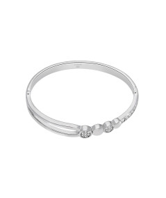 Pulsera en acero color plata, de aro rígida con circonitas color blancas