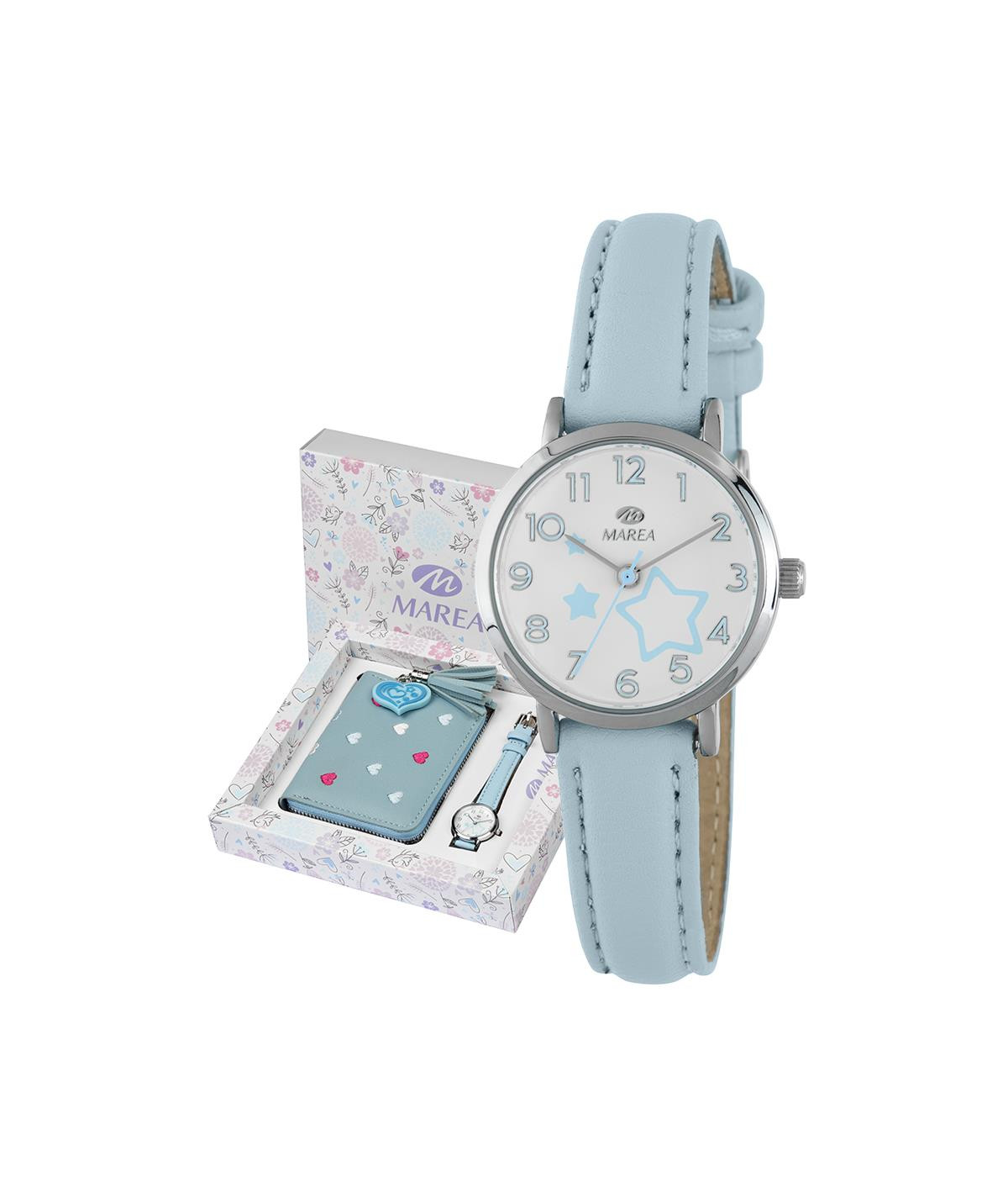 Este reloj incluye monedero azul de regalo