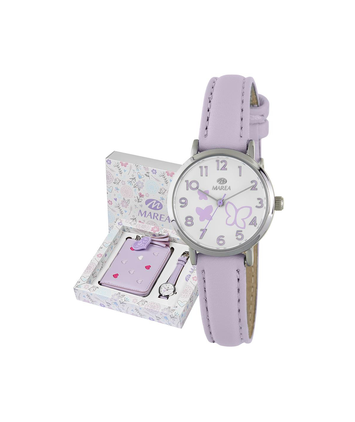 Este reloj incluye monedero malva de regalo