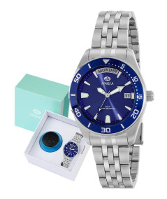 Reloj para niño, analógico con caja en acero color plata y esfera azul con calendario y dia de la semana