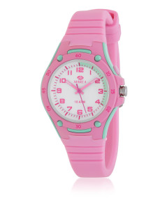 Reloj para niña, analógico con caja de plástico y correa de silicona rosa