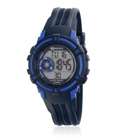 Reloj infantil, digital con caja de resina color azul oscuro con detalles en azul