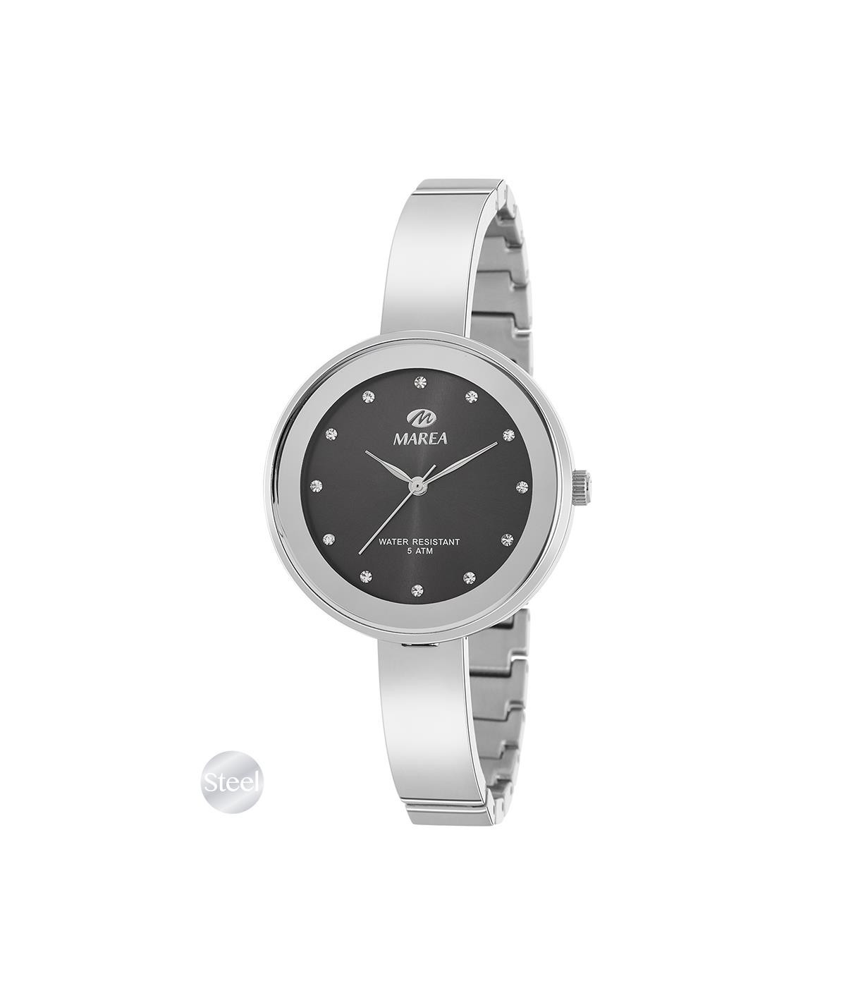 Reloj para mujer, analógico con caja en acero color plata y esfera negra con