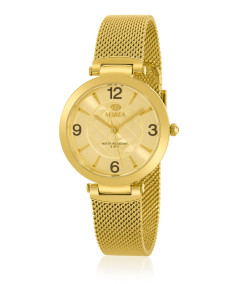 Reloj para mujer, analógico con caja de acero color dorado y esfera del mismo tono.