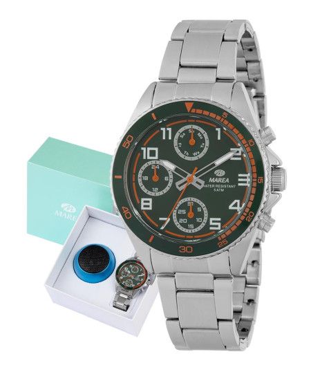 Reloj para niño, Especial Comunión, analógico con caja de metal y correa de acero. Set con auriculares Bluetooth de botón .