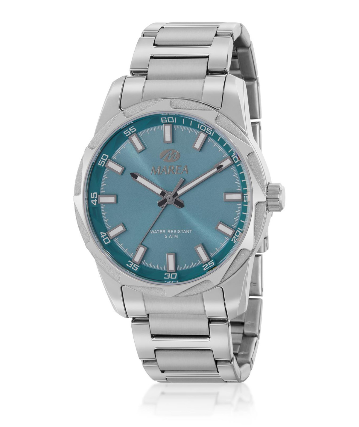 Reloj para hombre, analógico con caja de metal antialérgico color plata y esfera turquesa