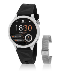 Reloj Smart tanto para hombre como para mujer con correa de silicona de color negro + correa intercambiable de acero.