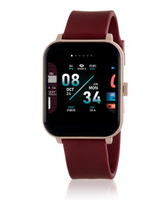 Smartwach unisex con caja cuadrada tono rose goldy correa de silicona color granate
