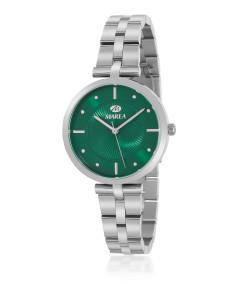 Reloj para mujer, analógico con caja de acero color plata y esfera verde con índices plateados
