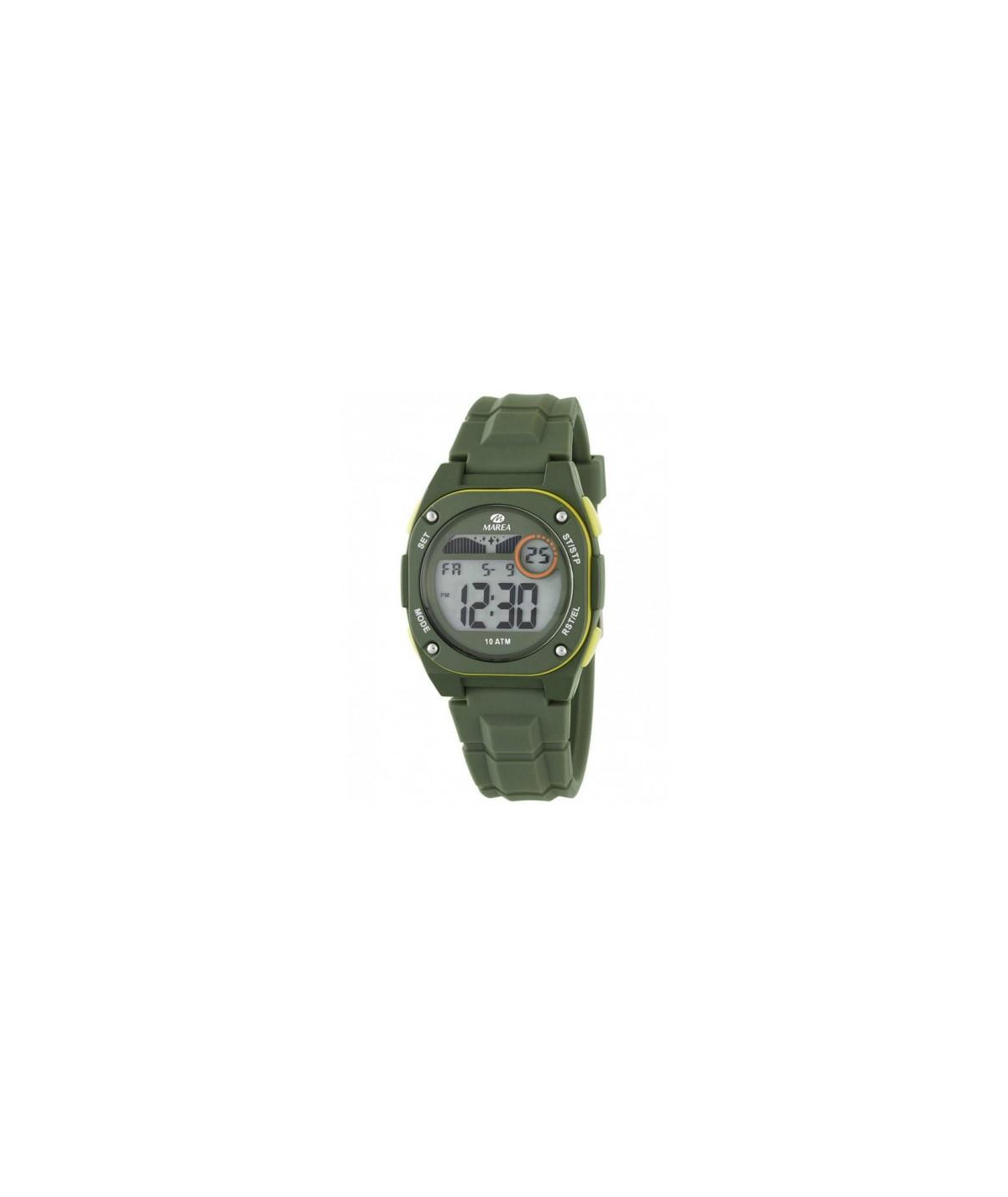Reloj para niño, digital con caja en policarbonato color verde con detalles en amarillo