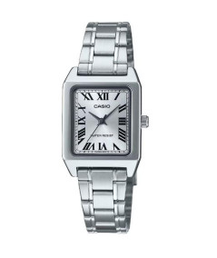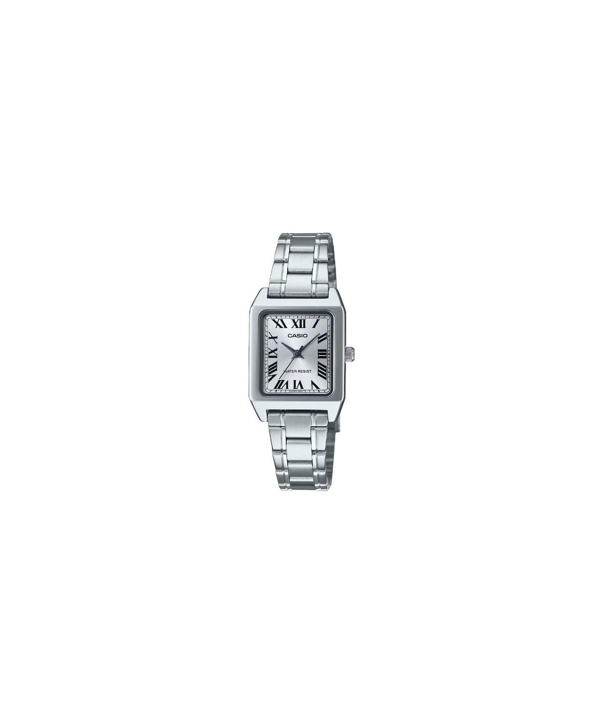 Reloj para mujer, analógico con caja cuadrada de acero y esfera plateada con números roamanos