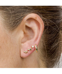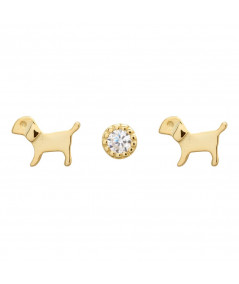 Set de tres pendientes perrito-circonita-perrito en plata con un baño de oro que podrás combinar como más te guste dando un toque divertido a tu dia a dia. También disponible en plata.