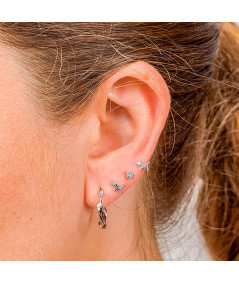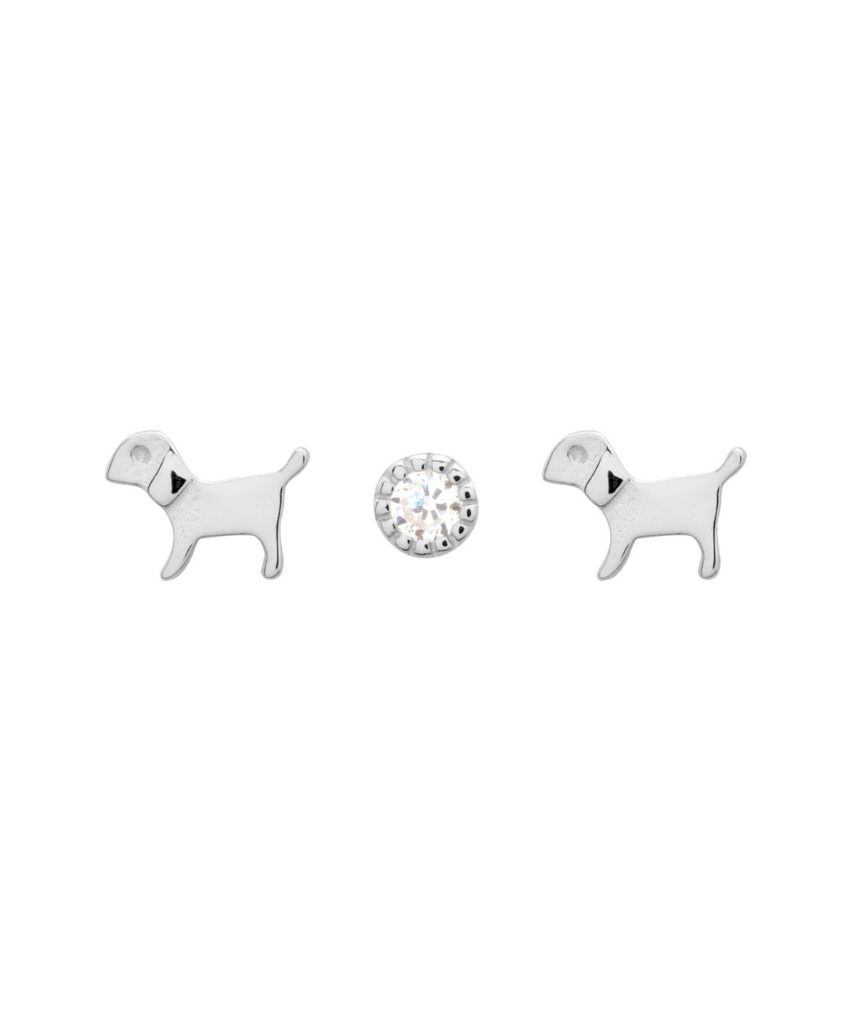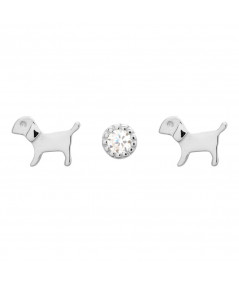 Set de tres pendientes perrito-circonita-perrito en plata que podrás combinar como más te guste dando un toque divertido a tu dia a dia. También disponible en oro.